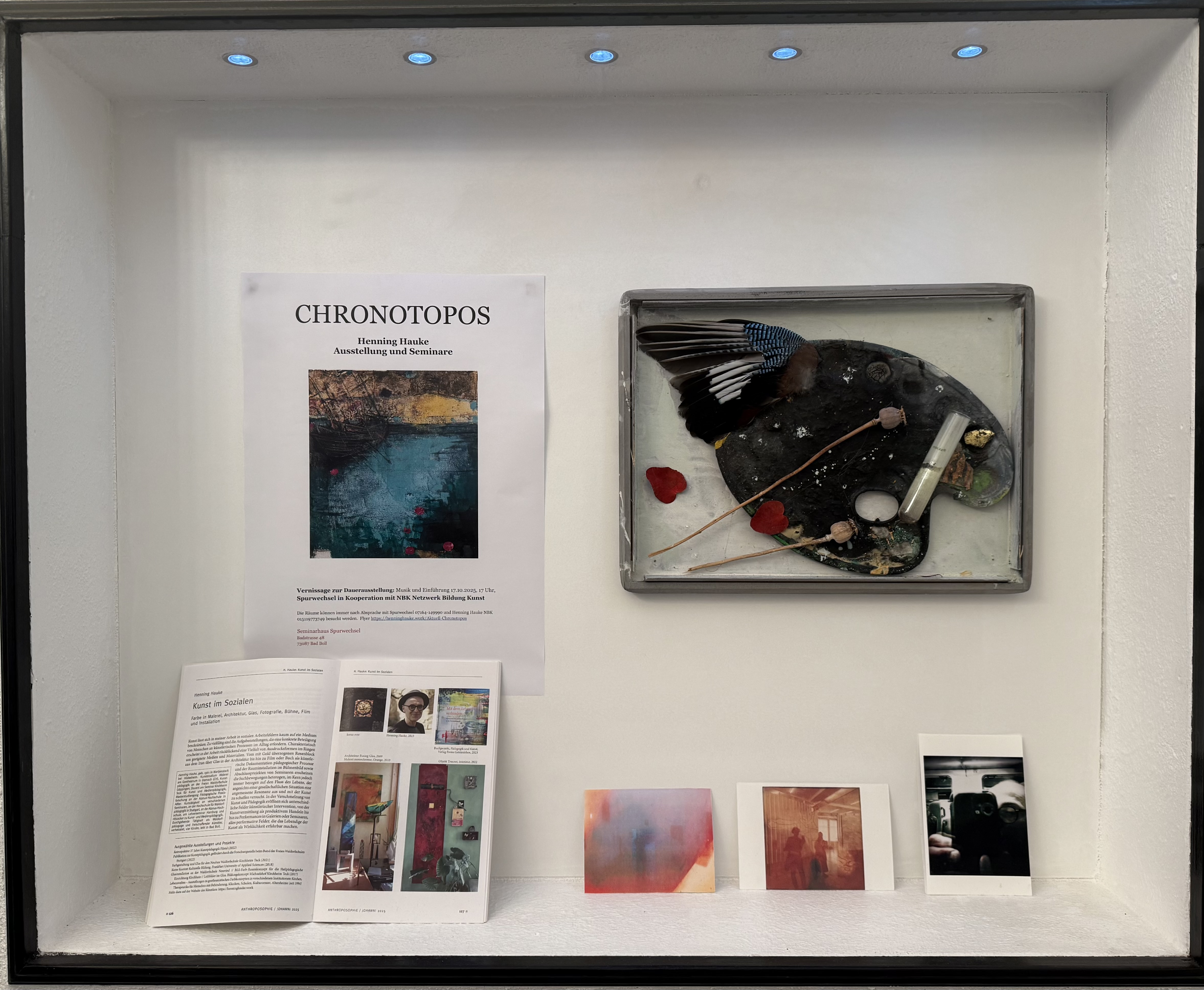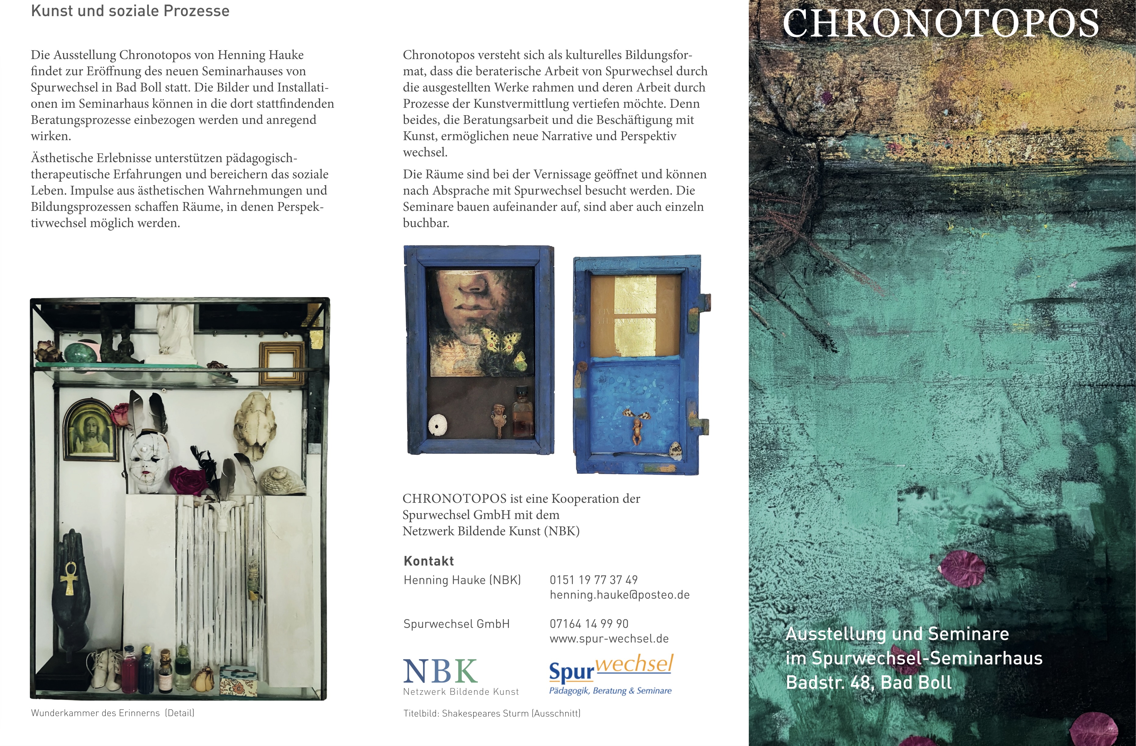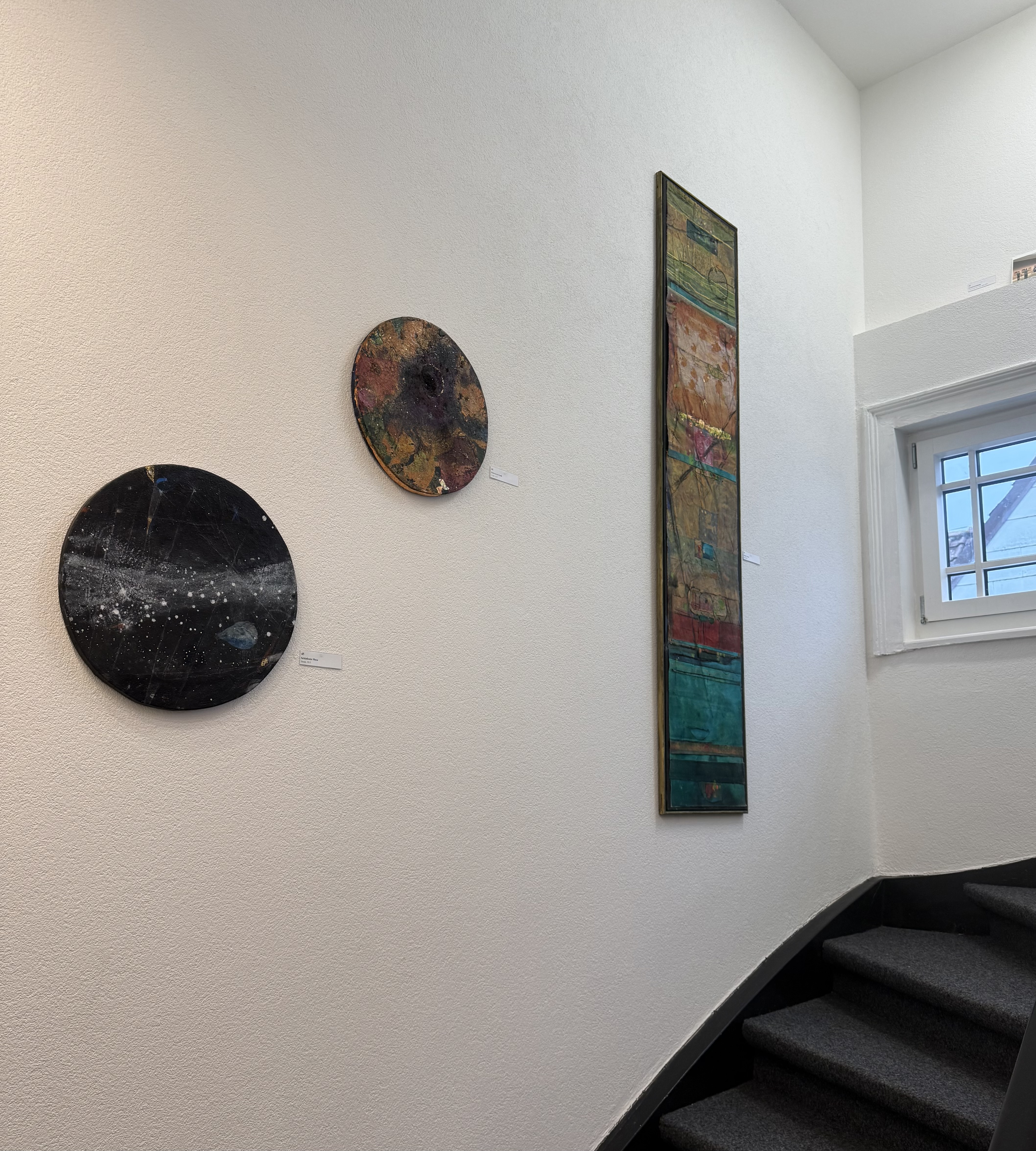 Organisation Spurwechsel https://www.spur-wechsel.de/ ein Konzept, dass auf drei Stockwerken 70 meiner Arbeiten präsentiert. Die Ausstellung dient nun für einen längeren Zeitraum als Ort für Seminare, Dialoge und Gespräche überästhetische Wahrnehmungen. Bislang gab es schon manche Ausstellungsbesuche und Dialoge, dabei dienten die Exponate als Anregungen, um über Themen wie transgenerationle Traumata oder biografische Grenzsituationen und gesellschaftliche Krisen ins Gespräch zu kommen.
